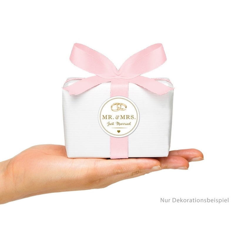 Tolle Sticker mit dem Aufdruck „Mr & Mrs“ versehen, diese senden damit eine nette Botschaft an die Gäste.