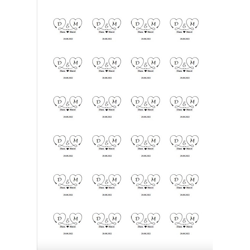 Mit den 24 runden und personalisierten Aufkleber “Herzen” verleihst den Gastgeschenken zur Hochzeit ein wunderschönes Aussehen und überraschst Deine Hochzeitsgäste!