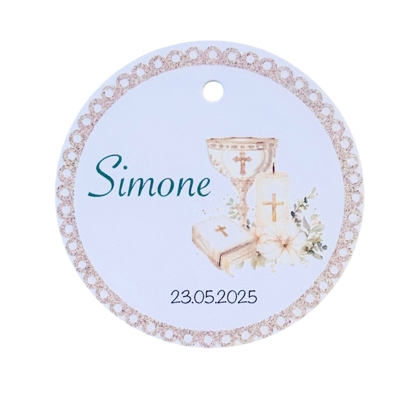 Personalisierte Anhänger für Gastgeschenke oder Seifenblasen. Individuell bedruckt mit Name und Datum.