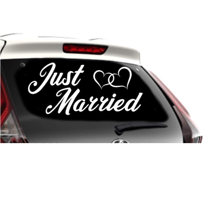 Dank diesem Aufkleber mit der Aufschrift 'Just Married' wird die Autodekoration vom Brautpaar perfekt sein. Sie können den Aufkleber an die Heckscheibe, an die Tür oder an die Motorhaube des Autos kleben. Einfaches Anbringen am Auto.