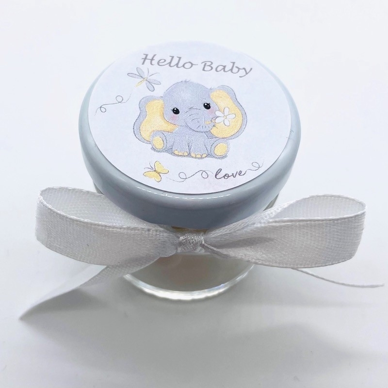 Schöne Sticker mit dem Aufdruck „Hello Baby“ versehen.