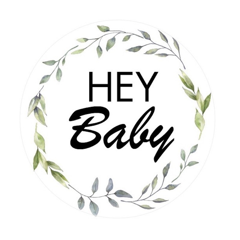 Schöne Sticker mit dem Aufdruck „Hey Baby“ versehen.