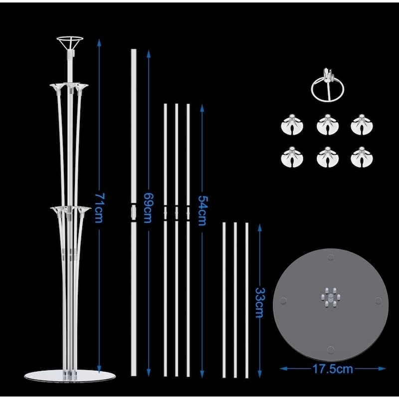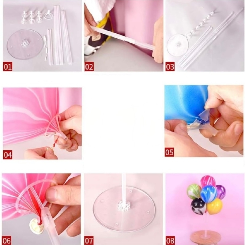 Sie können dieses Party-Material auf dem Tisch und auf dem Boden verwenden. Ein Ständer besteht aus Cups und Halterungen für die einzelnen Stäbe.