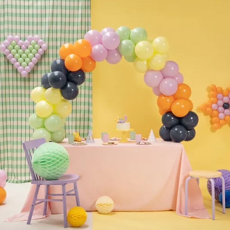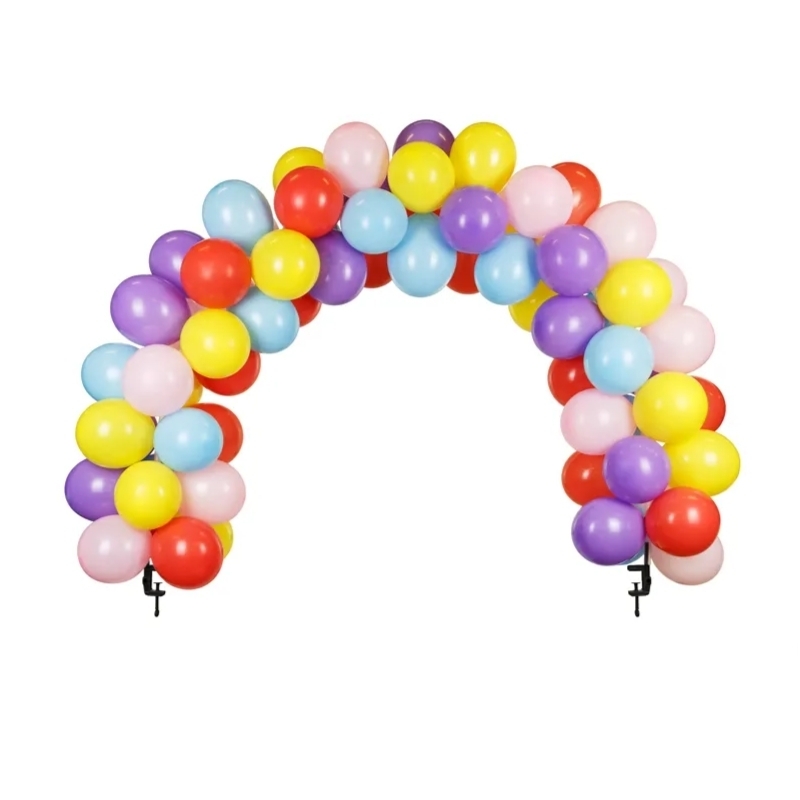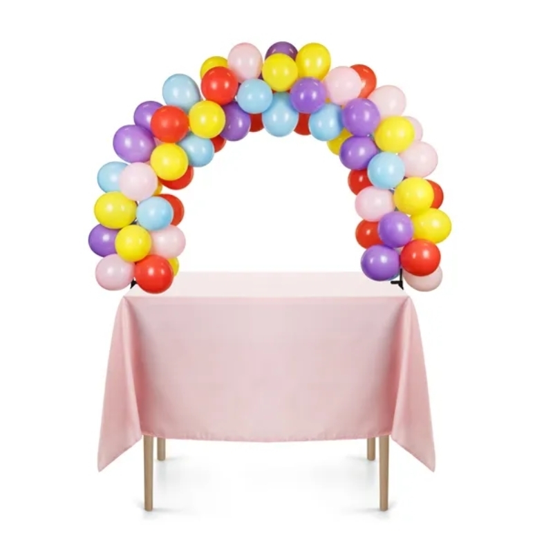 Schaffen Sie mit diesem raffinierten Ballonbogen einen beeindruckenden und farbenfrohen Eingang oder Hintergrund für Fotos! Die Halterung lässt sich mit zwei stabilen Klammern ganz einfach direkt auf der Tischplatte befestigen. Perfekt für Kindergeburtstage, Taufen, Babypartys oder andere Feierlichkeiten, bei denen Sie dem Event etwas mehr Farbe verleihen möchten.