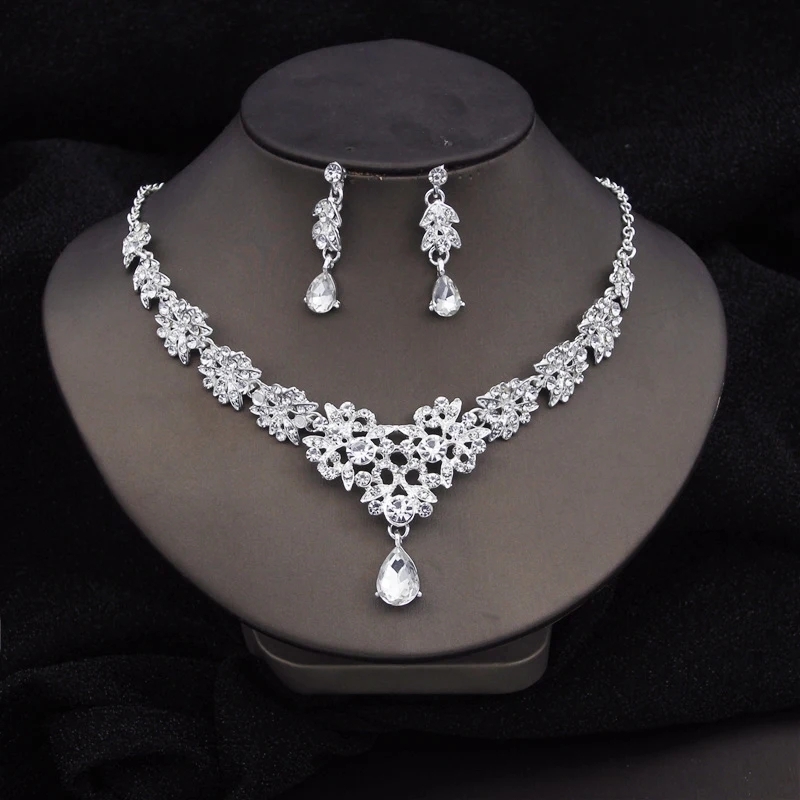 Das elegante Schmuckset bestehet aus einer Kette und einem Paar Ohrringen.