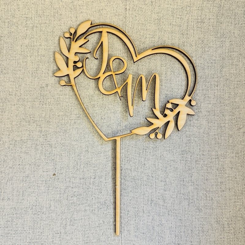 Cake Topper 'Herz mit Initialen' - Holz