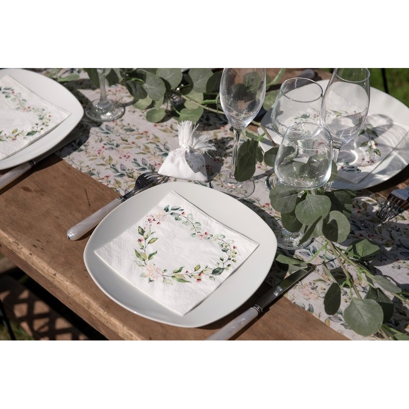 Diese Servietten mit Blättern und Blüten in Herzform sind ein sanfter Akzent für Ihre Hochzeitsdeko.