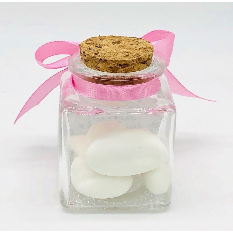 Inhalt: Miniglas, Schleife, Sticker & 5 Mandeln. Die Hochzeitsmandeln werden separat geliefert, damit diese während dem Transport in den Gläschen nicht beschädigt werden. Einfach je 5 Hochzeitsmandeln in die Korkengläser füllen und Fertig.