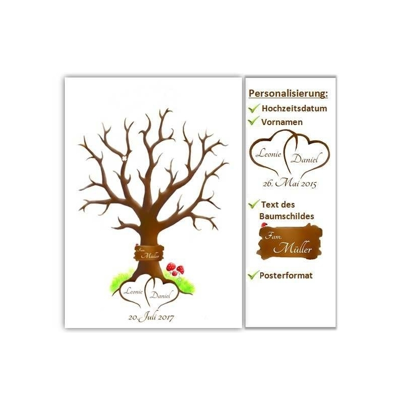 Die Namen, Hochzeitsdatum und Text des Baumschildes teilen Sie uns bitte während dem Bestellvorgang mit.