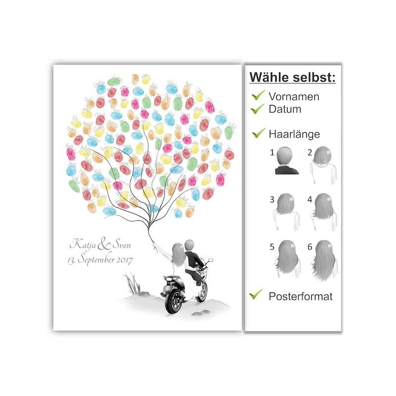 Die romantische Alternative zum traditionellen Gästebuch. Jeder Gast taucht seinen Finger in dem Stempelkissen und verewigt sich mit seinem ganz individuellen Fingerabdruck.