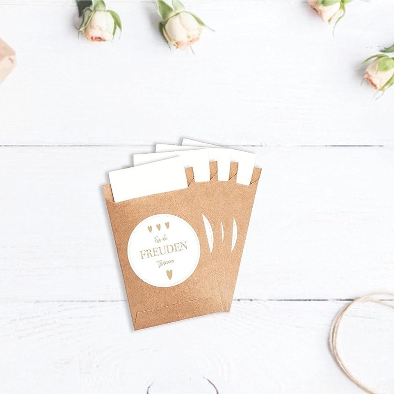 Inhalt: 100 Sticker & 100 braune Flachbeutel