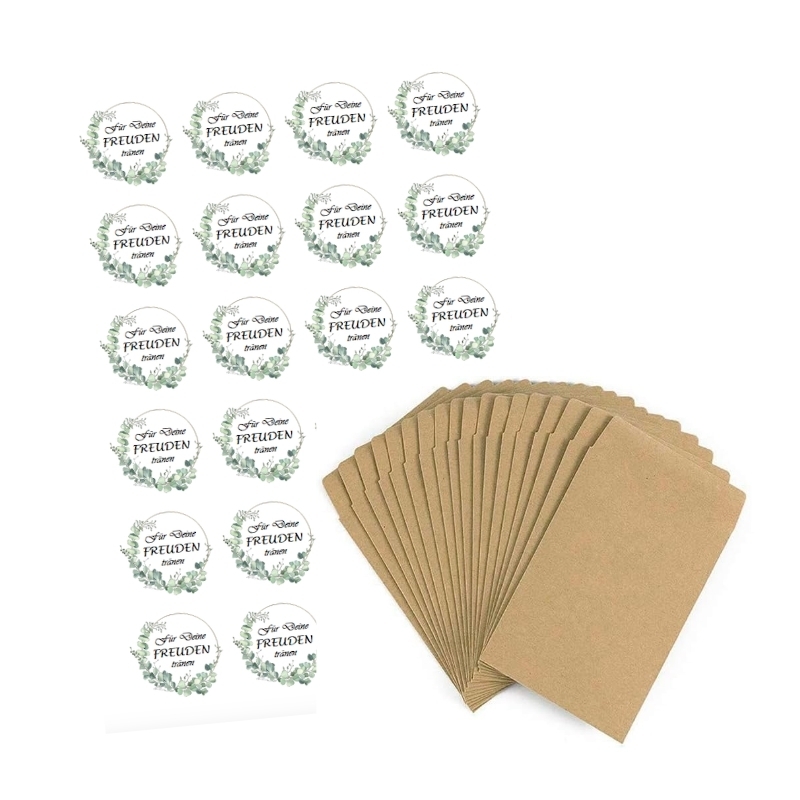 Inhalt: 24 Sticker & 24 braune Flachbeutel