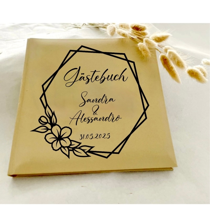 Unser Gästebuch wird für Sie liebevoll handgefertigt und mit Ihren persönlichen Daten versehen.