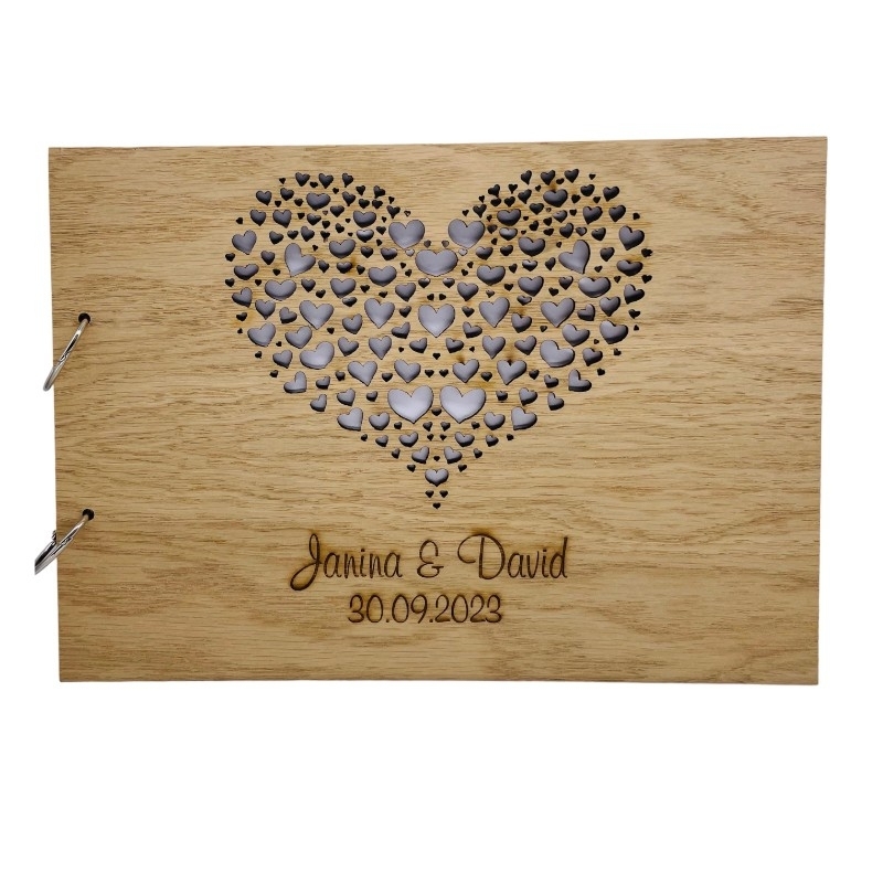 Gästebuch personalisiert Holz 'Herzen'