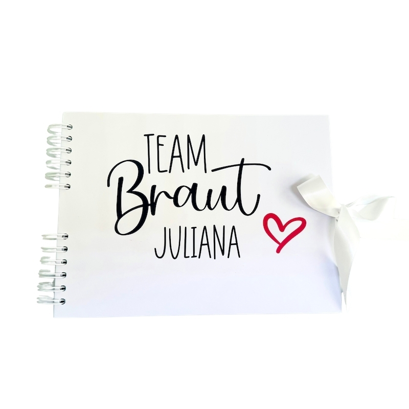 Ein wunderschönes Gästebuch mit Spiralbindung für die schönsten Worte an die Braut. Die 80 weissen Seiten bieten viel Platz für die JGA-Gesellschaft, um ihre Herzenswünsche an die werdende Braut zu schreiben. Auf dem Cover wird der Name von der Braut ergänzt.