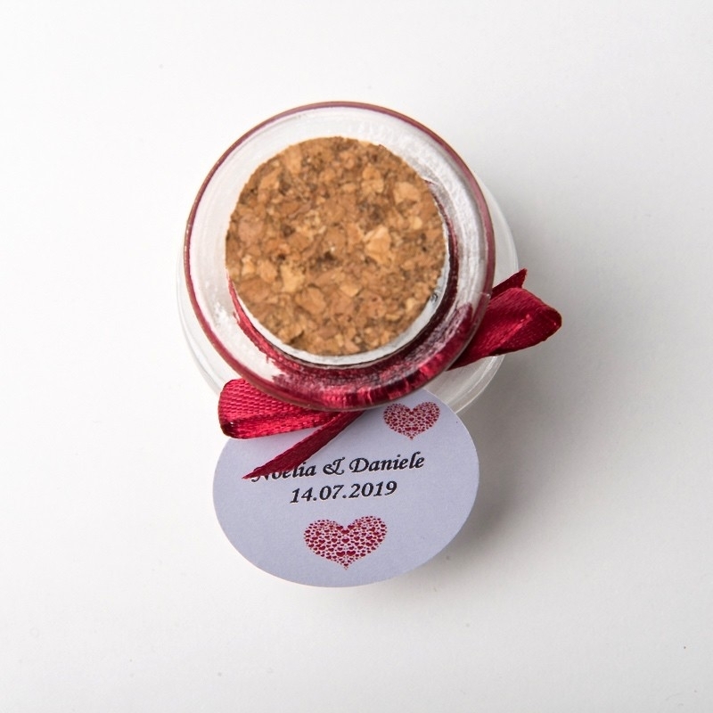 Glasfläschchen Bastelset personalisiert - Herzen (45 Gäste)