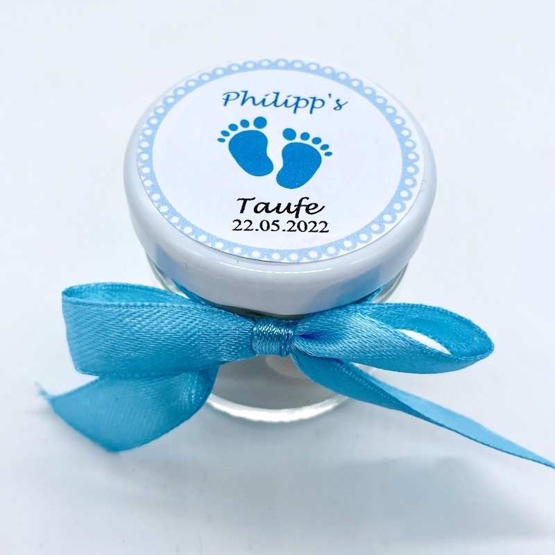 Miniglas personalisiert 'Babyfüsse' - blau
