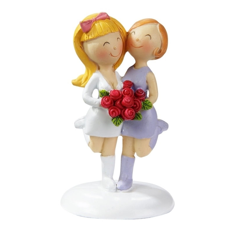 Peppige Dekoration aus Kunstharz für eine Hochzeitstorte mit zwei Frauen.