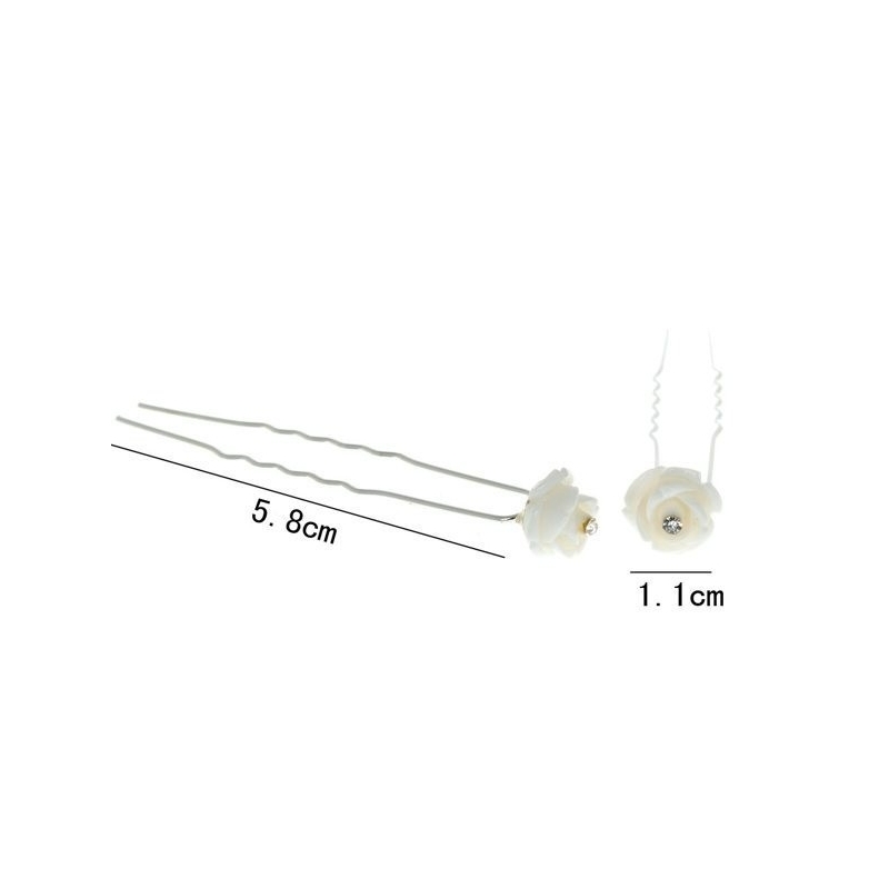 20 traumhafte Haarnadeln mit weisser Rose und in der Mitte ein Strassstein.