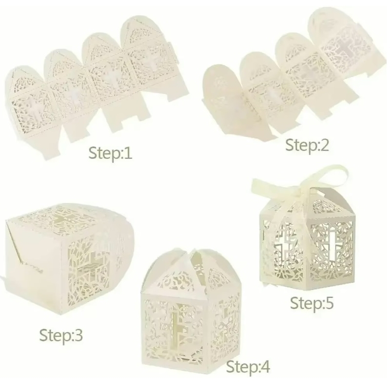 10 Kartonage 'Vogelkäfig Kreuz' - Creme