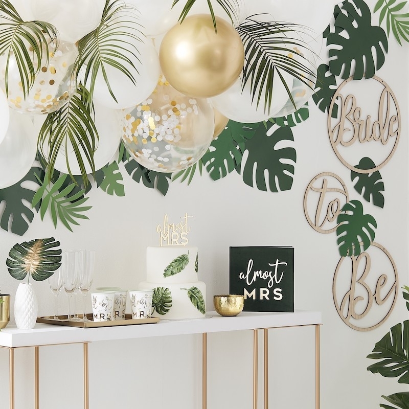 - Wenn Sie Ihren Bogen fertiggestellt haben und mit der Form zufrieden sind, schneiden Sie einen Teil des Kunststoffbandes ab und befestigen den Bogen an der dafür vorgesehenen Stelle: über einem Buffet-Tisch, in einer Photobooth-Ecke...
