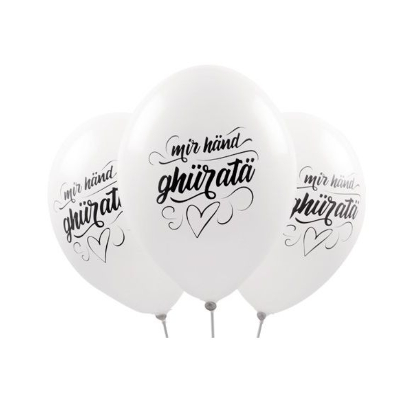 Feiern und dekorieren Sie die Hochzeit mit unseren schweizerdeutsch bedruckten "Mir händ ghüratä" Ballons. Nutzen Sie die Ballons als Dekoration für den Saal, die Fahrzeuge, die Tische Ihrer Hochzeitsgäste oder Ihrer gesamten Zeremonie.