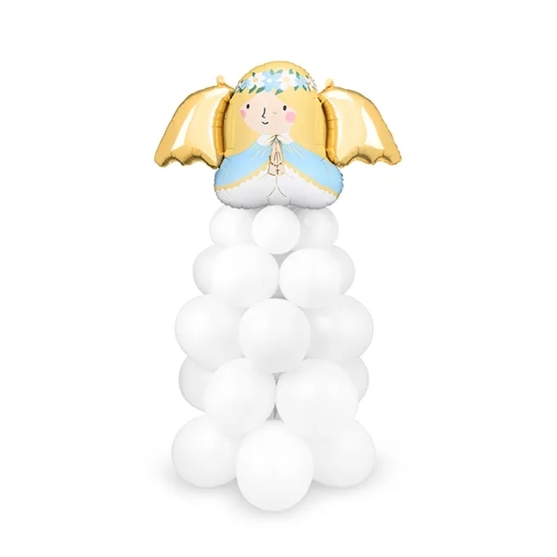Diese Ballonsäule "Engel" ist die perfekte Dekoration, um jeder Feier Charme und Eleganz zu verleihen. Das Set besteht aus 29 weissen Latexballons, 4 transparenten Modellierknete-Ballons und 1 Folien-Engel-Ballon, der die eigentliche Dekoration der Säule ist. Ein Strohhalm zum Aufblasen der Ballons ist ebenfalls enthalten.
