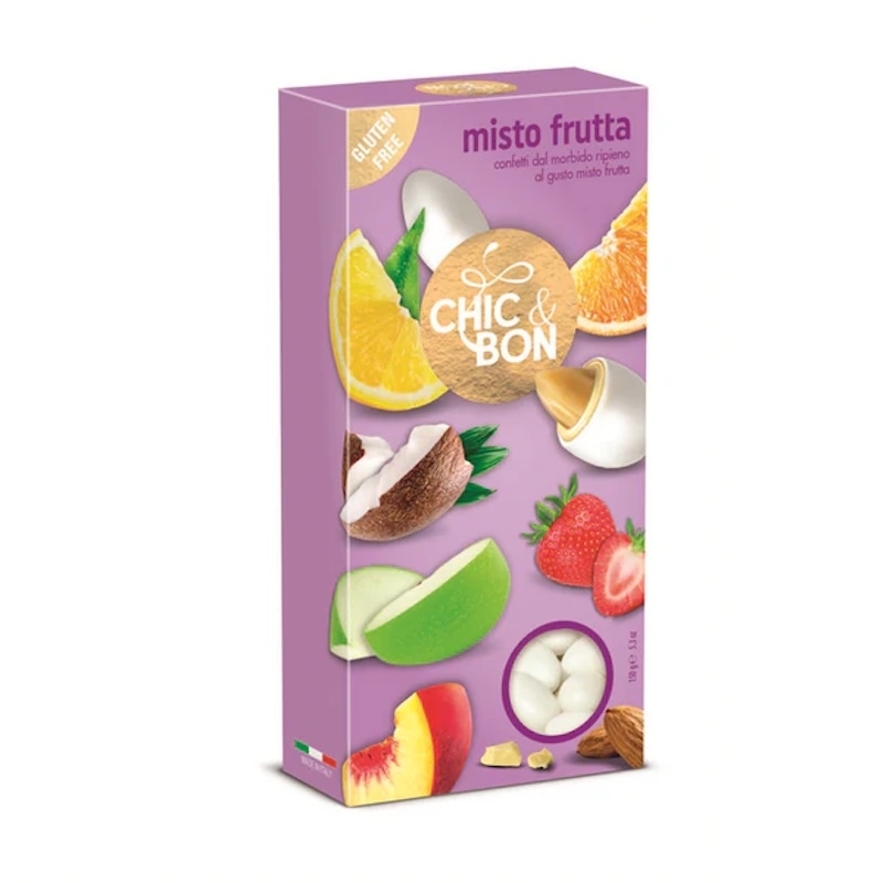 Köstlich gefärbte gebrannte Mandeln in verschiedenen Fruchtgeschmacksrichtungen, weiche Füllung. (Glutenfrei)