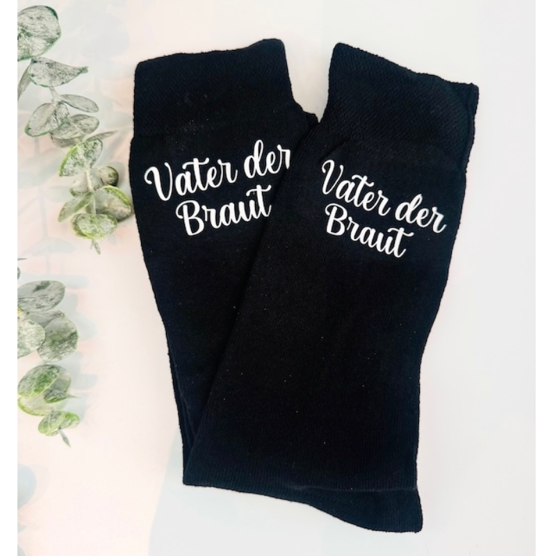 Die Socken sind auf der Aussenseite bedruckt mit dem Text: "Vater der Braut".