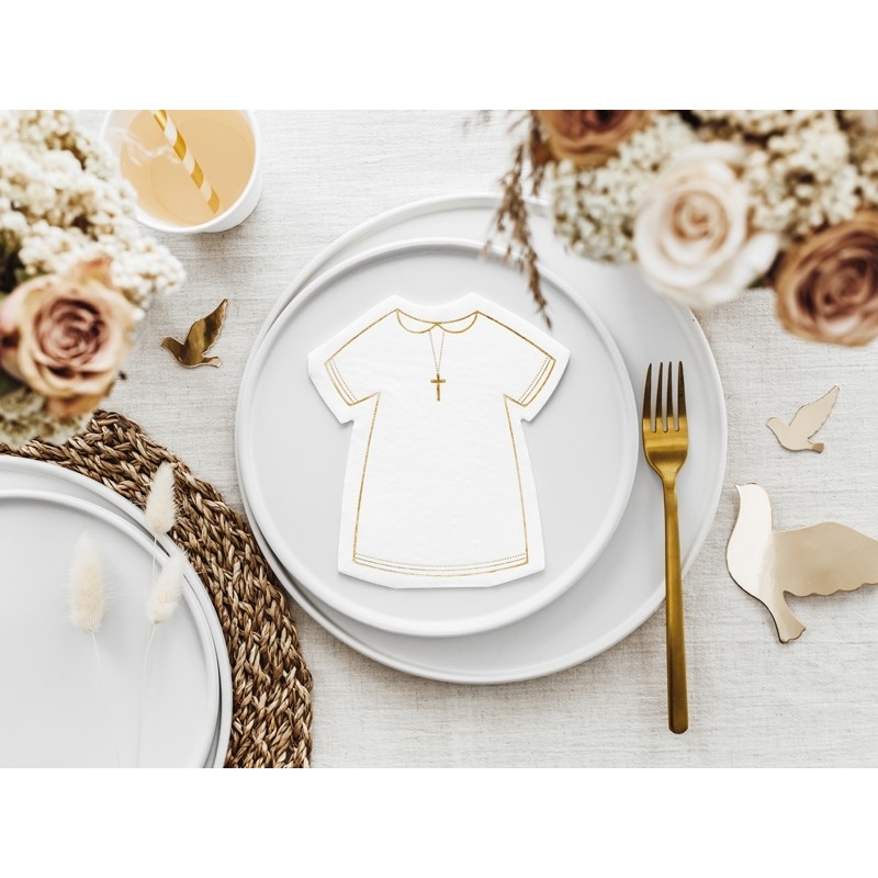 Diese Serviette eignet sich hervorragend für die Tischdekoration zur Kommunion oder Firmung. Papierservietten in Form einer Kommunion-Kutte in weisser Farbe mit Goldmetalldruck.