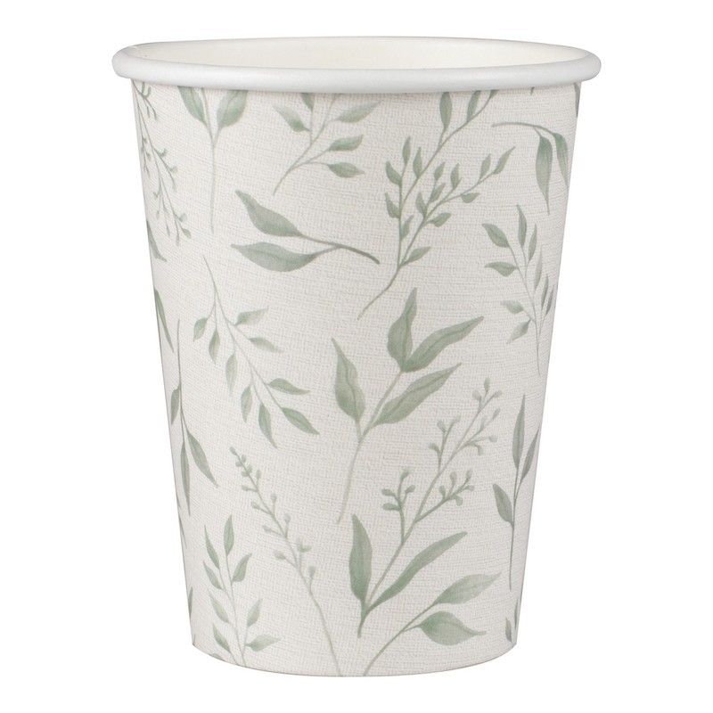 Bringen Sie mit diesen schönen Pappbecher eine botanische Atmosphäre an Ihrer Taufe.