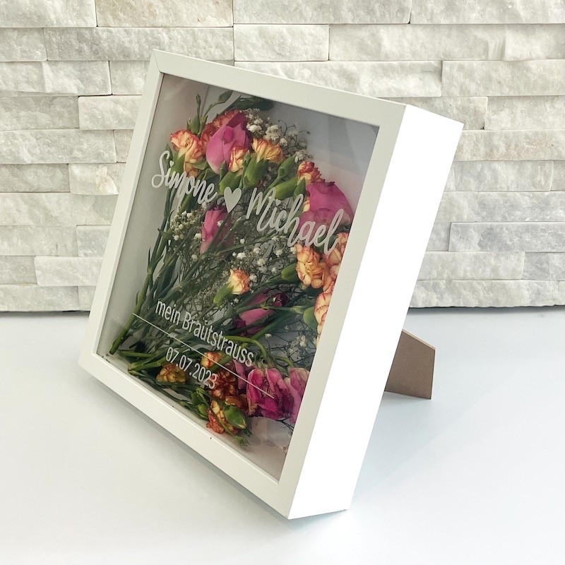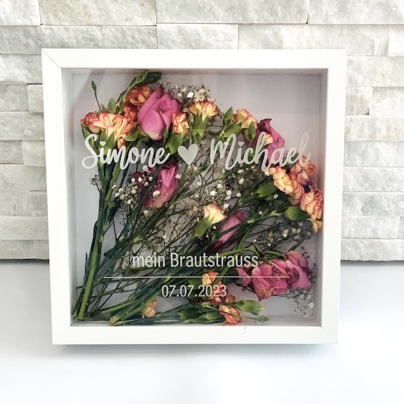 Bilderrahmen für Brautstrauss personalisiert