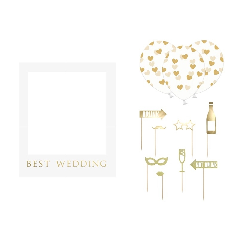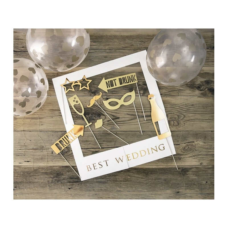 - 1 Stk. Selfie-Rahmen mit goldener Aufschrit „Best Wedding“ (50×59,5cm)