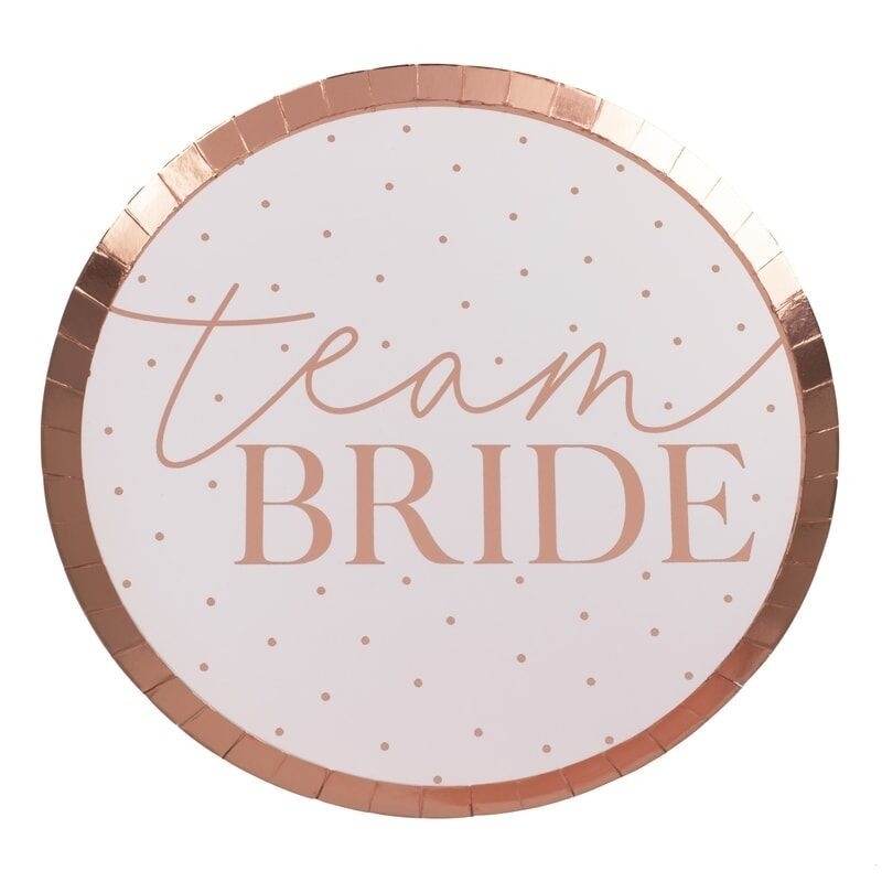 Diese stylischen Pappteller mit zarten Punkten und edler Roségoldprägung sind ein absoluter Hingucker!
