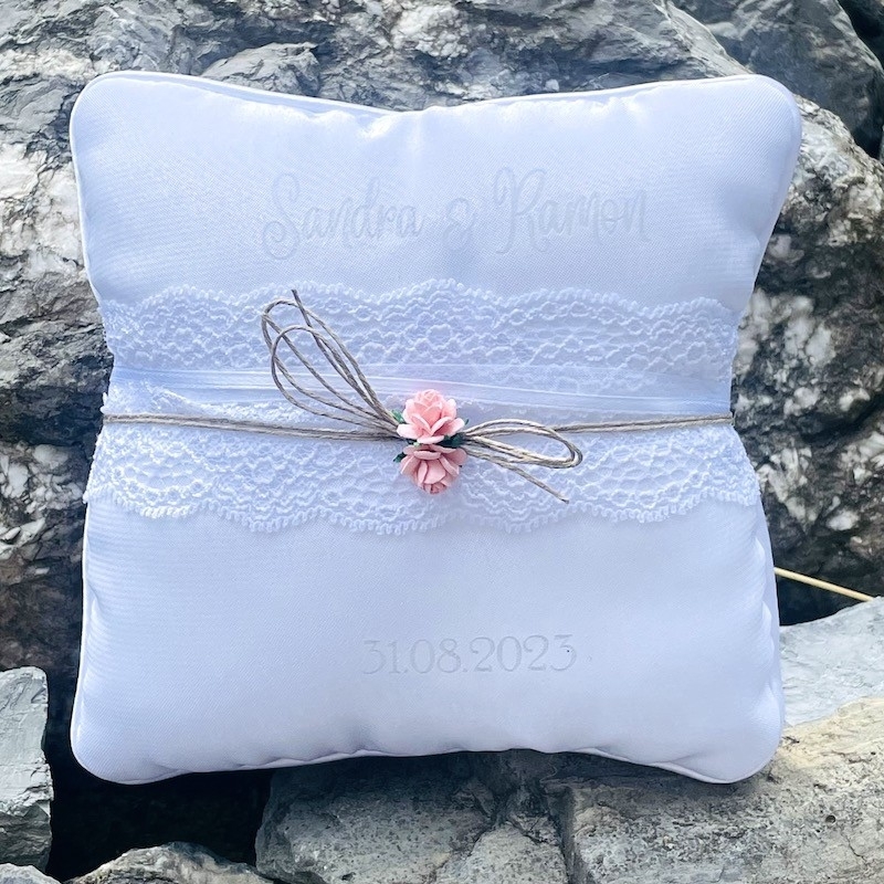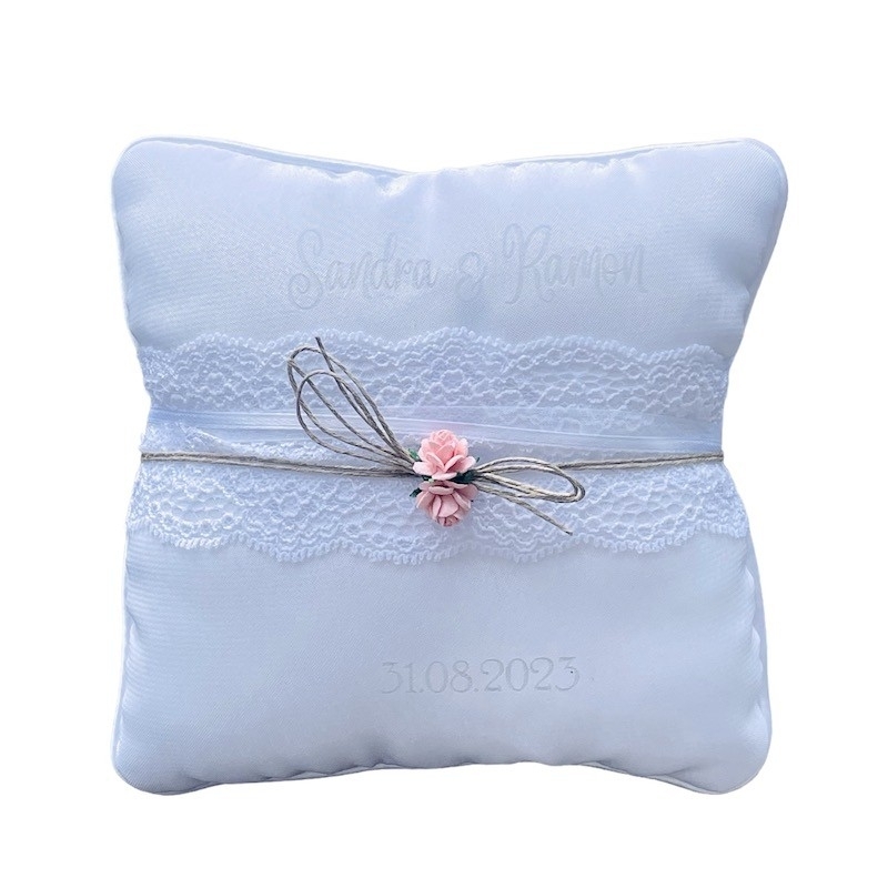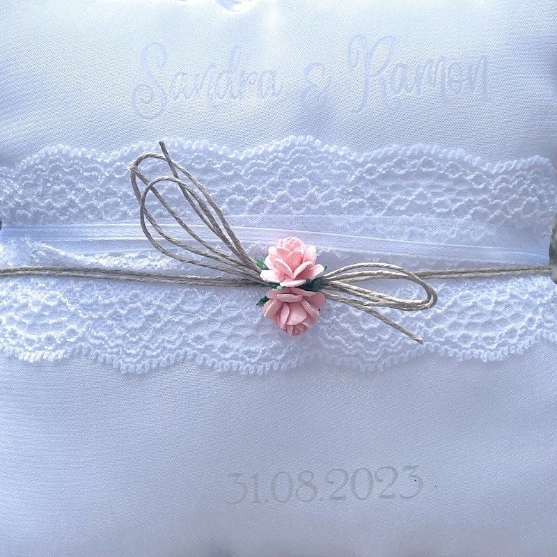 Personalisiertes Ringkissen 'Spitze mit Rosen'