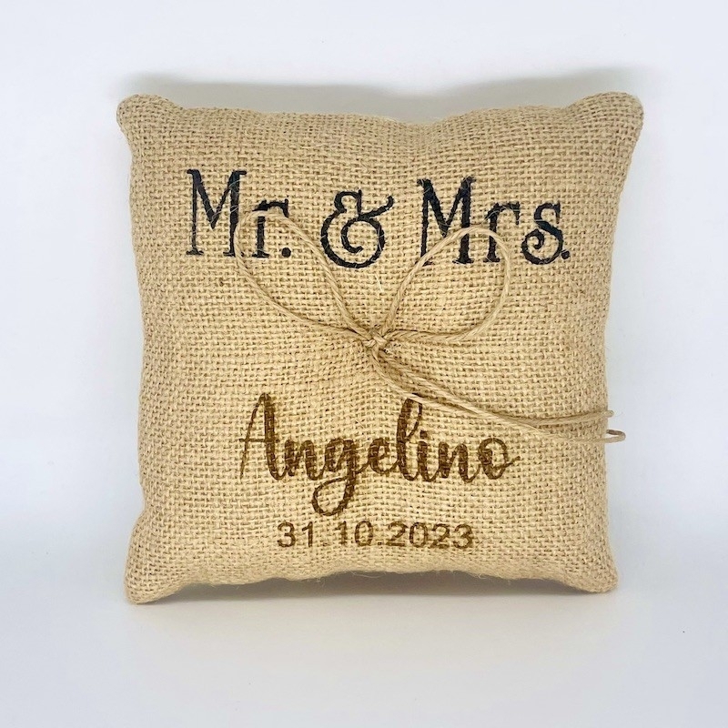 Personalisiertes Ringkissen Jute 'Mr & Mrs'