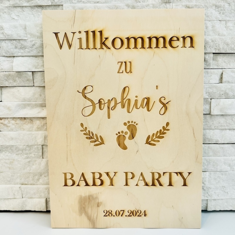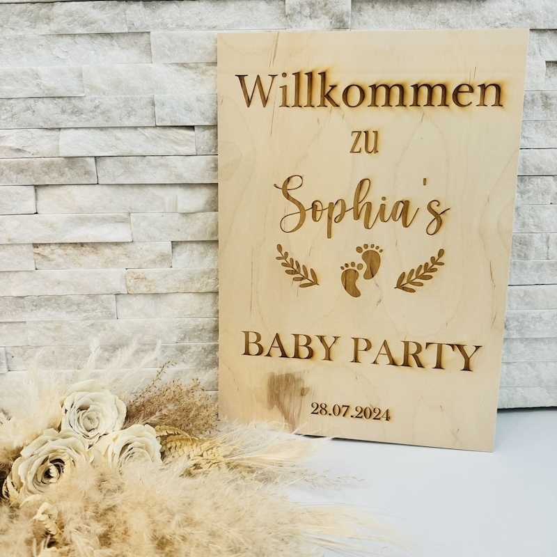 Dieses wunderschön Holzbrett hat ein Masse von 30 x 42 cm eignet sich für Ihre Babyparty.