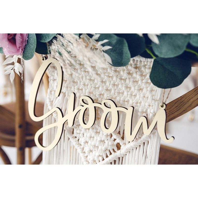 Trendige Hochzeitsdeko mit den wunderschönen Stuhlschilder BRIDE & GROOM.Nicht nur als Stuhlschild können die Schilder genutzt werden, auch als Dekoelement für eure Location können sie vielseitig eingesetzt werden.