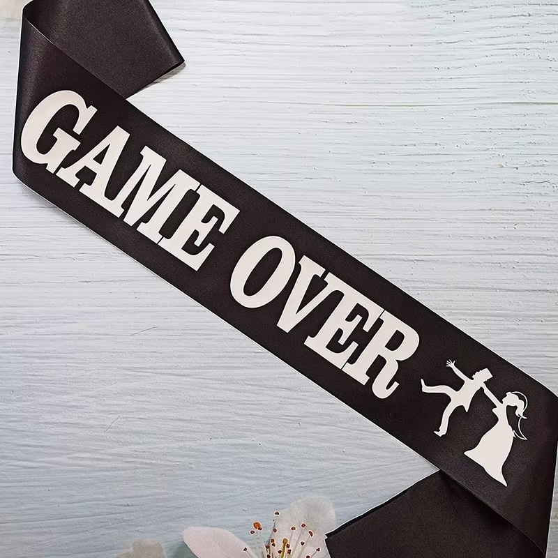 Diese Schärpe ist das perfekte Accessoire für den Polterabend! Die hübsche Schärpe in Schwarz mit Schriftzug "GAME OVER" in weiss macht auf den ersten Blick deutlich, wer der Star der Party ist. Damit ist ein unvergesslicher Abend garantiert!