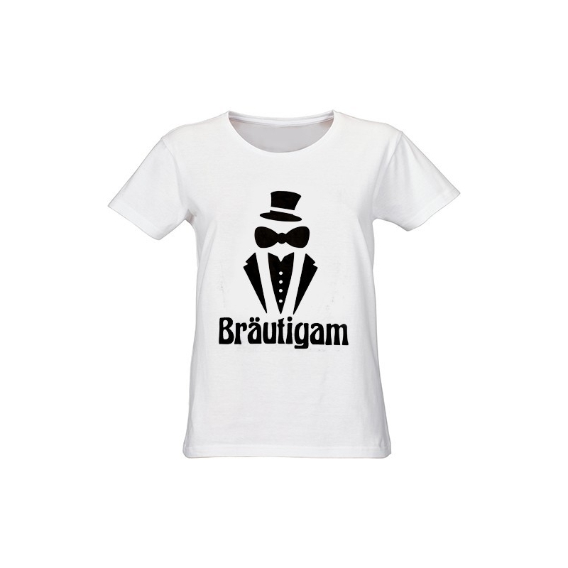 Ihr habt keine Lust der Bräutigam in einem Kostüm zu stecken, sondern setzt lieber auf ein bedrucktes T-Shirt, jedoch ohne peinlichen Spruch? Dann liegt ihr mit diesem Shirt goldrichtig. Das weisse T-Shirt ist aus Baumwolle und somit auch bei hohen Temperaturen oder im heissen Club angenehm zu tragen.