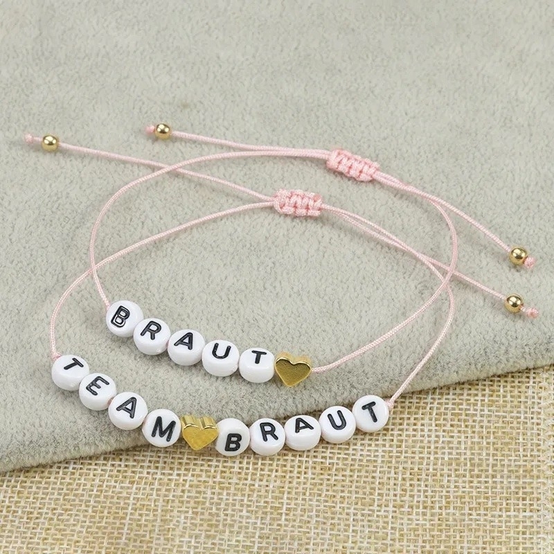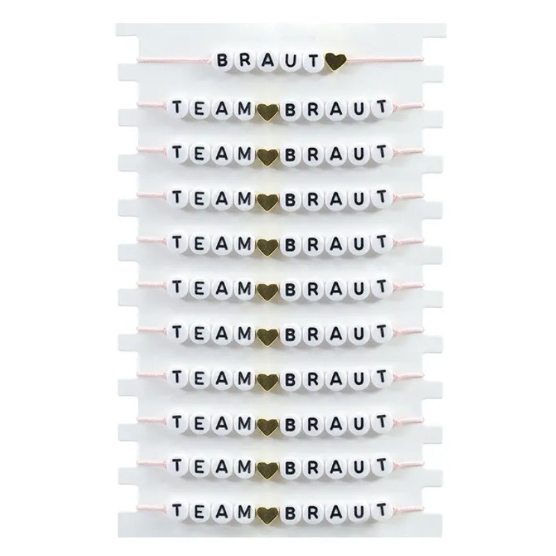 Das Set besteht aus 12 Armbänder, eine für die Braut und 11 für das Team Braut.