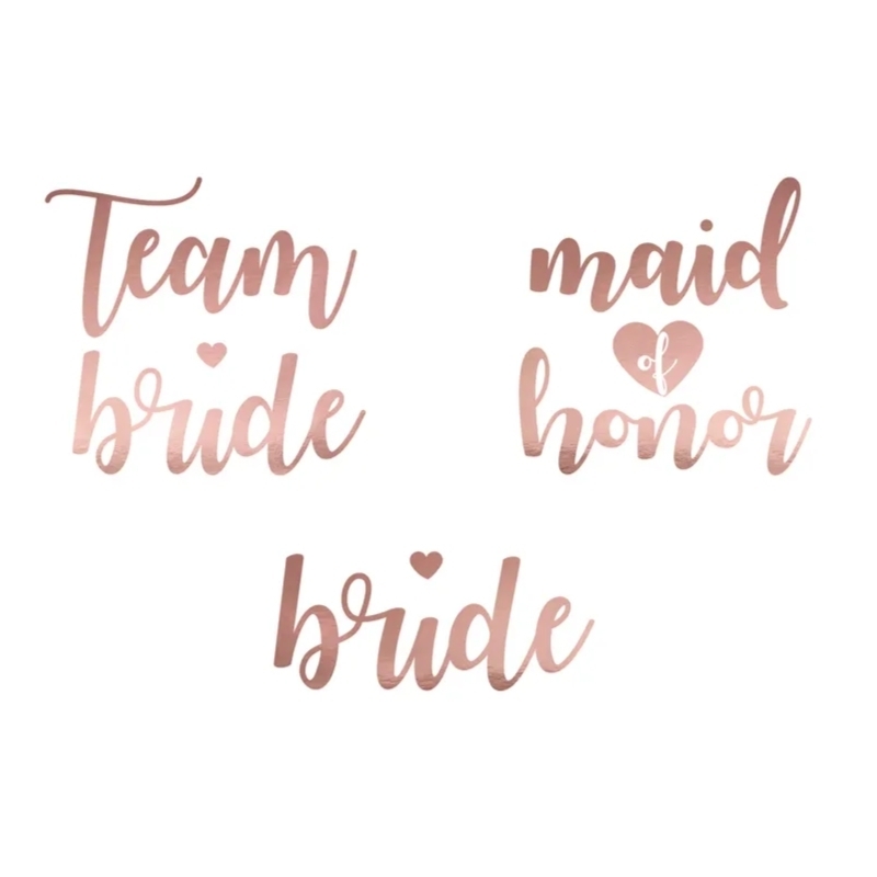 Diese Tattoos in Roségold sind ein stylisches Accessoire für den Junggesellinnenabschied! Temporäre Tattoos einfach aufzutragen und zu entfernen. Perfekt für den Polterabend mit der zukünftigen Braut und den besten Freundinnen.