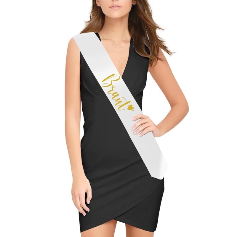 Auf der Vorderseite ist die Schärpe mit der Aufschrift in gold "Braut" bedruckt.