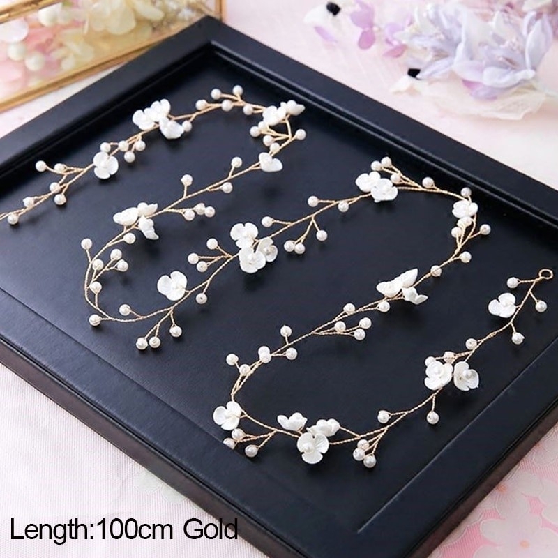 Bandeaux pour cheveux perles & fleurs - or