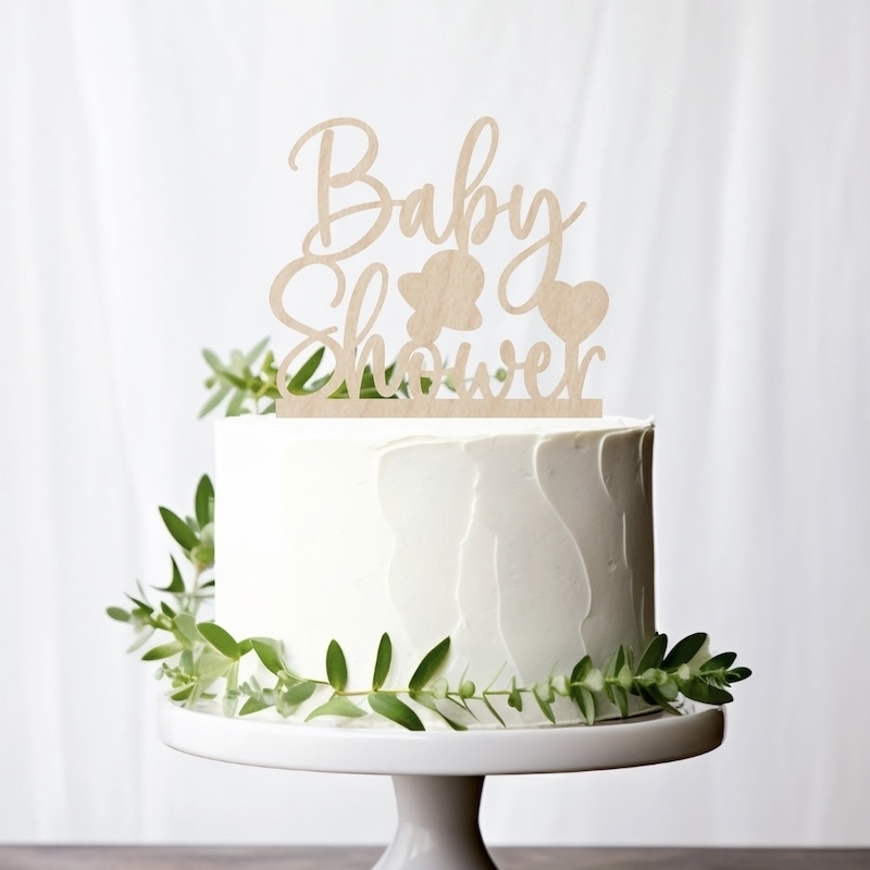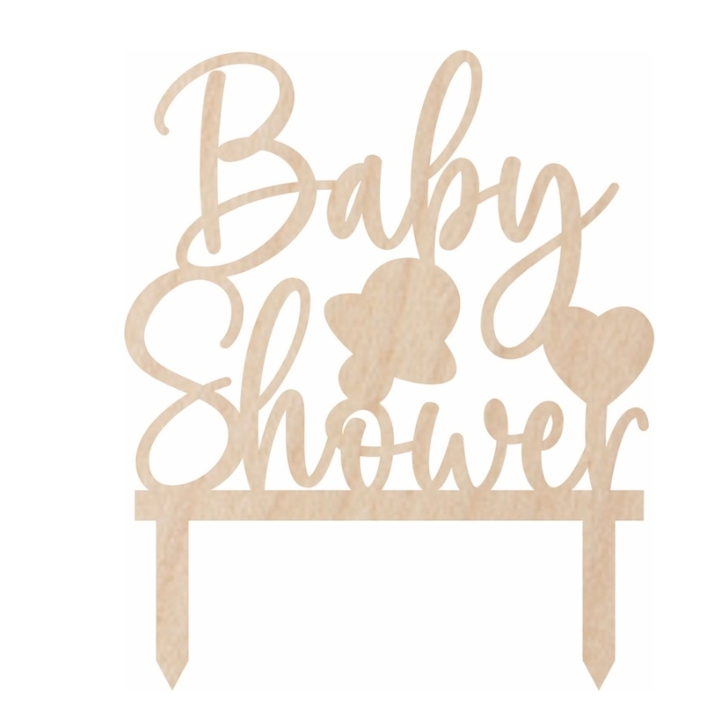 Très jolie l'inscription 'Baby Shower' avec un cœur et une tétine en bois. Elle est parfaite pour le gâteau de la fête de bébé. Il suffit de l'insérer dans le gâteau et le tour est joué.