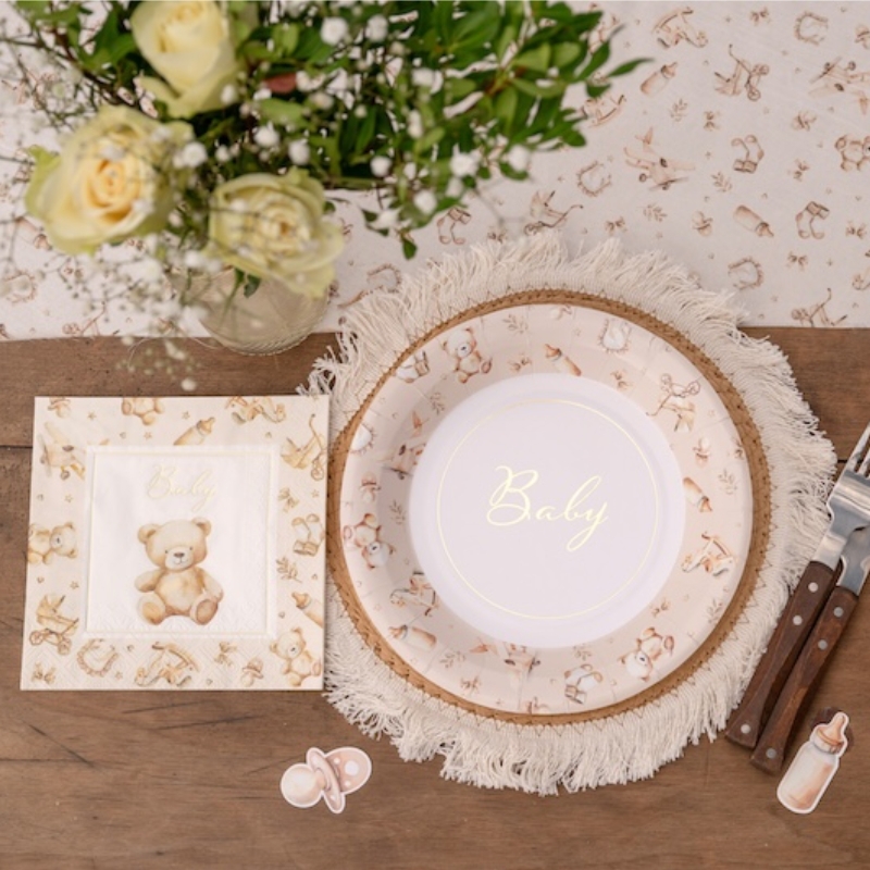 Créez une atmosphère douce et chaleureuse pour la fête de votre petit trésor ! Avec ces serviettes ravissantes, votre décoration de table sera tout simplement unique. Le motif charmant représentant un adorable ours en peluche dans des tons ivoire doux confère immédiatement à votre fête une touche chaleureuse et accueillante.