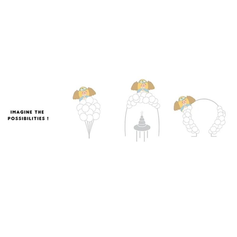 Cette colonne de ballons "Ange" est la décoration parfaite pour donner du charme et de l'élégance à toute fête. Le set se compose de 29 ballons blancs en latex, de 4 ballons transparents en pâte à modeler et d'1 ballon "ange" en film plastique, qui constitue la véritable décoration de la colonne. Une paille pour gonfler les ballons est également incluse.