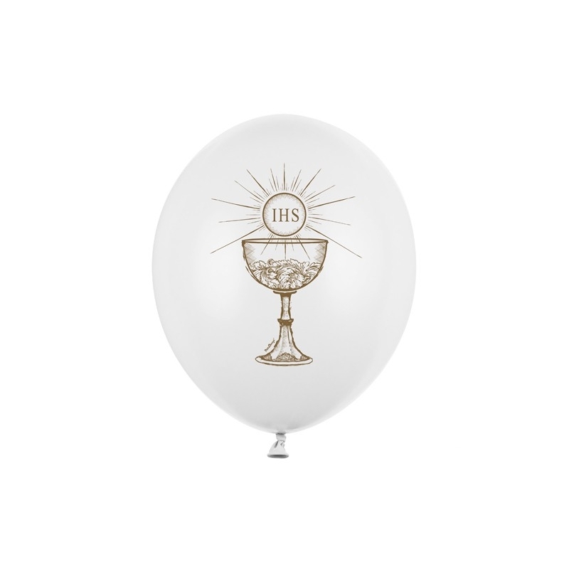 Très beaux ballons blancs et or avec le calice symbolique et le monogramme IHS.