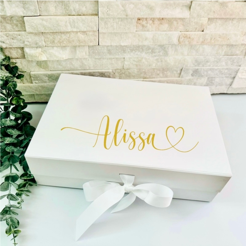 - Boîte magnétique avec nœud et nom souhaité sur la boîte (31 x 22 x 10 cm)
