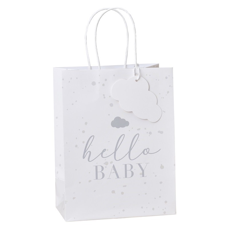 Pour remercier les invitées de leur venue et garder un souvenir de la fête, offrez ces adorables sacs cadeaux Hello Baby.